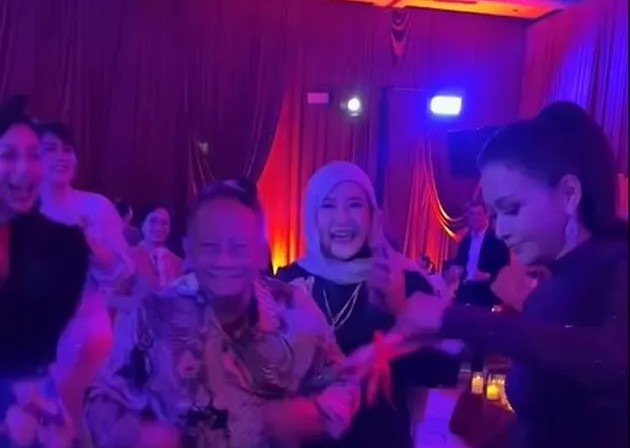 Salah satu momen yang paling mencuri perhatian datang dari ayah Maia Estianty. Ia terlihat menikmati acara dengan penuh semangat, bahkan ikut berjoget mengikuti alunan musik yang diputar sepanjang malam.
