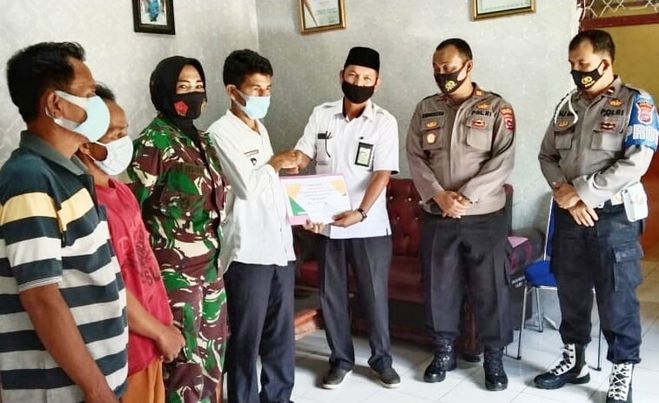 Hadir dalam penyerahan bantuan Baznas, Danramil 03 Pulau Punjung, Mayor CAJ (K) Tuti Andayani, anggota Polsek Koto Agung serta orang tua korban, Rusudi.