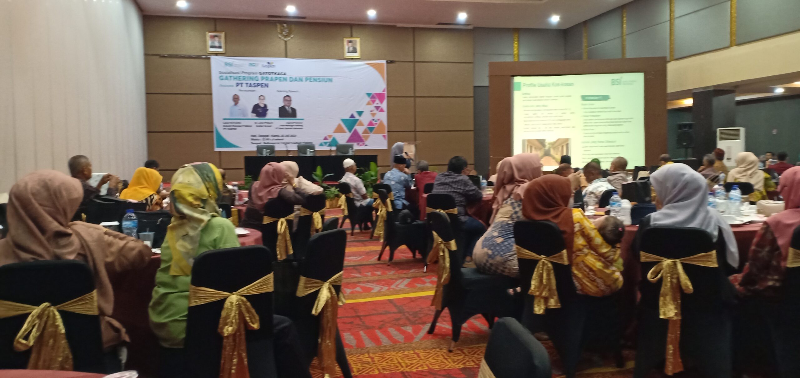 Selain BSI juga dari Taspen tampil menyampaikan cara mengajukan pensiun dan program lainnya yang berkaitan seluk beluk pengurusannya.