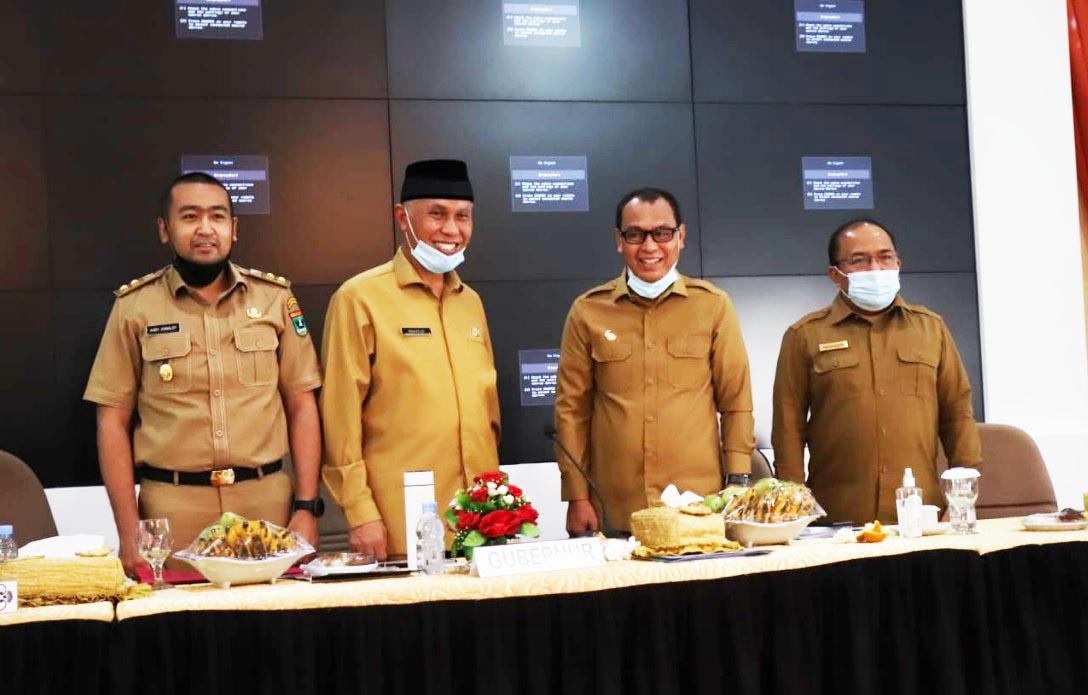 Gubernur Mahyeldi, Wagub Audy Joinaldy, Kepala Bappeda Hansastri dan Bupati Kepulauan Mentawai Yudas Sabagalet, Selasa (9/3/2021)