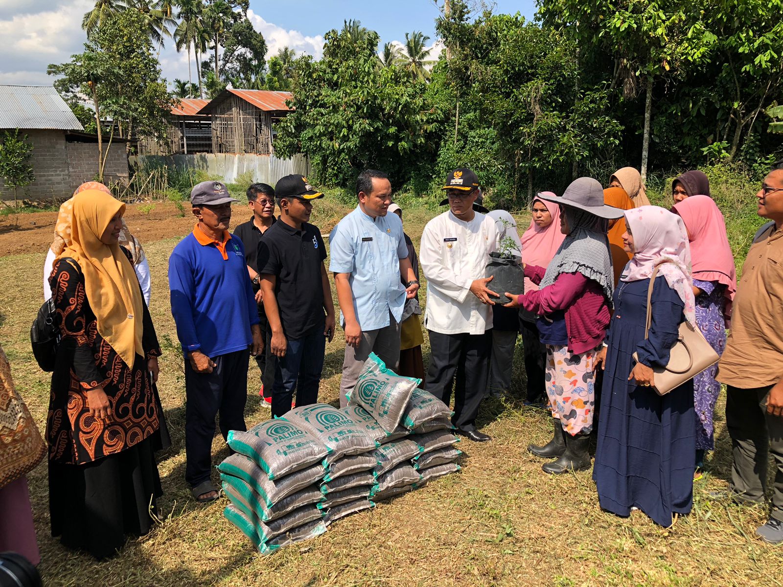 Didampingi Asisten III bidang administrasi umum Ifon Satria, kepala dinas sosial Irwan Suwandi, Camat Latina Diki Engla, Lurah Padang Sikabu dan jajarannya, Pj. Walikota Payakumbuh serahkan bantuan kepada Lili (39) selaku pemilik lahan yang dikelola kelompok PKH kelurahan Padang Sikabu.