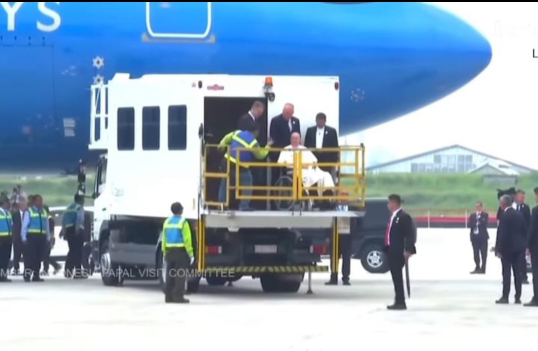 Sebelumnya, Pemimpin Gereja Katolik Dunia tersebut mendarat dengan pesawat komersil ITA Air Ways sekitar pukul 11.25 WIB.