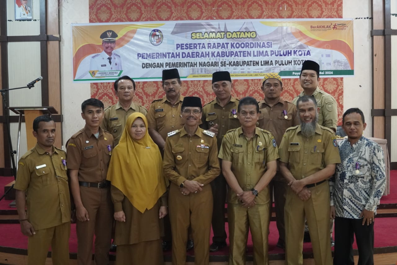 SEMANGATNEWS. COM — Produktifitas dan efektifitas penyelenggaraan pemerintahan, pelaksanaan pembangunan, maupun pelayanan masyarakat di Nagari perlu di dorong untuk mewujudkan nagari sebagai poros pembangunan di Kabupaten Limapuluh Kota. Capaian-capaian kinerja yang telah ditorehkan oleh sejumlah nagari tentu mendapat apresiasi penuh Bupati Limapuluh Kota Safaruddin Dt.Bandaro Rajo. Melalui Dinas Pemberdayaan Masyarakat Desa/Nagari, Bupati menyerahkan piagam penghargaan maupun bantuan dana pembangunan untuk sejumlah nagari yang sukses menyelenggarakan pemerintahan. Penyerahan piagam tersebut diselenggarakan pada kegiatan Rapat Koordinasi Wali Nagari dan Bamus se-Limapuluh Kota yang diselenggarakan di Aula Dinas Peternakan Provinsi Sumbar, Selasa, (21/01/2024). Turut hadir dalam Rakor, Kepala DPMDN Endra Amzar, seluruh camat, Wali Nagari, dan Bamus Nagsri se Limapuluh Kota.