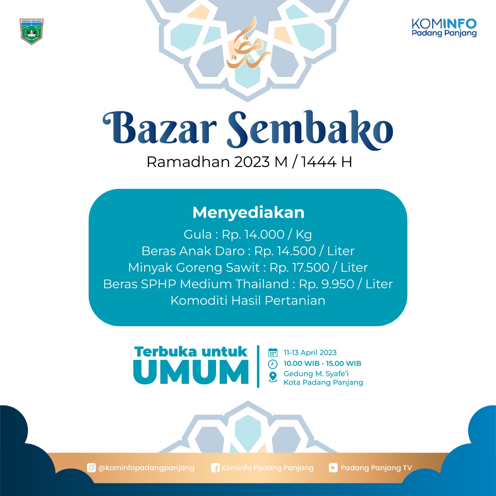 SEMANGATNEWS.COM, PADANG PANJANG – Dinas Perdagangan Koperasi, Usaha Kecil dan Menengah (Disperdakop UKM) akan menggelar bazar murah produk sembako guna menstabilkan harga sembako pada bulan Ramadan ini. Bazar sembako murah itu akan digelar di Gedung M. Sjafei mulai besok, Selasa (11/4) hingga Kamis (13/4).