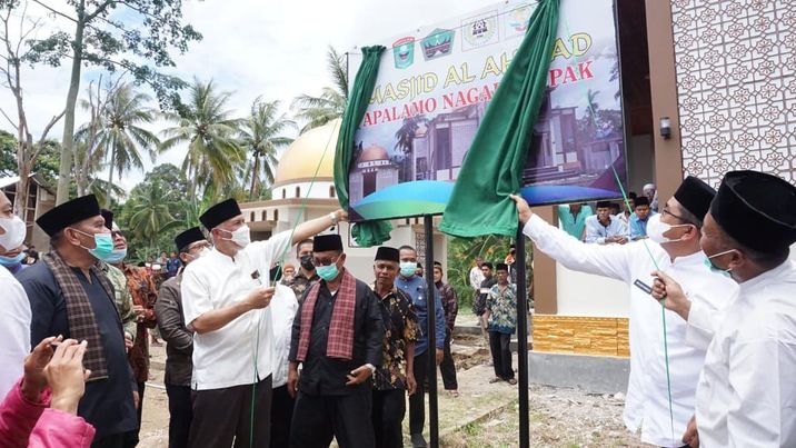 “Pembangunan masjid dan lembaga pendidikan yang representatif ini bernilai strategis dan sesuai serta relevan dengan RPJMD Sumbar 2021-2026 yaitu penguatan ABS-SBK,” kata Gubernur saat meresmikan Mesjid Al Ahmad dan Peletakan Batu Pertama Gedung A Cupak Islamic Boarding School di Apalamo Nagari Cupak Kabupaten Solok, Jumat (8/10/2021).