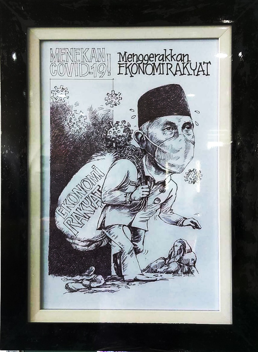 Hal itu pulalah yang dilakukan Zardi Syahrir di sela-sela kesibukannya sebagai salah seorang birokrat di rumah bagonjong dalam melahirkan karikatur berisikan gambar orang nomor satu di provinsi Sumatera Barat buya Mahyeldi Ansharullah yang bermuatan persoalan jeritan masyarakat di tengah pandemi covid.19 berjudul ; “Menekan Covid.19, Menggerakan Ekonomi Rakyat” memakai bahan tinta di atas kertas yang diserahkan langsung kepada Gubernur Sumbar Buya Mahyeldi melalui kelompok peduli dampak penanganan covid 19 di Sumbar, Jaringan Pimpred Sumbar (JPS) dibawah Koordinatornya Hery Sugiarto yang langsung diserahkan Mona Siska dari Wartawan Tribun Sumbar almamater Universitas Andalas, Kamis 12 Agustus 2021.