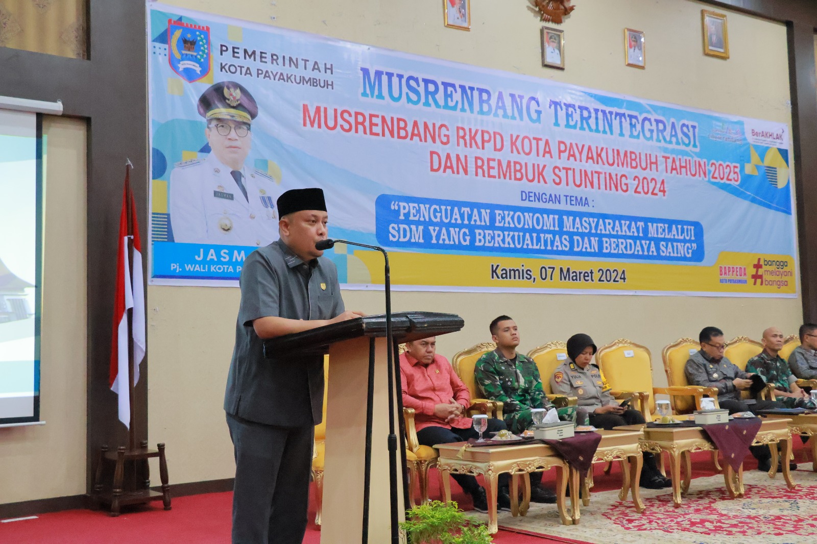 SEMANGATNEWS.COM — Ketua DPRD Kota Payakumbuh Hamdi Agus mengahadiri Musyawarah Perencanaan Pembangunan (Musrenbang) Rencana Kerja Pembangunan Daerah (RKPD) Kota Payakumbuh Tahun 2025 dan Rembuk Stunting 2024, di Aula Ngalau Lt. 3 Balai Kota Payakumbuh, Senin (07/03/2024).