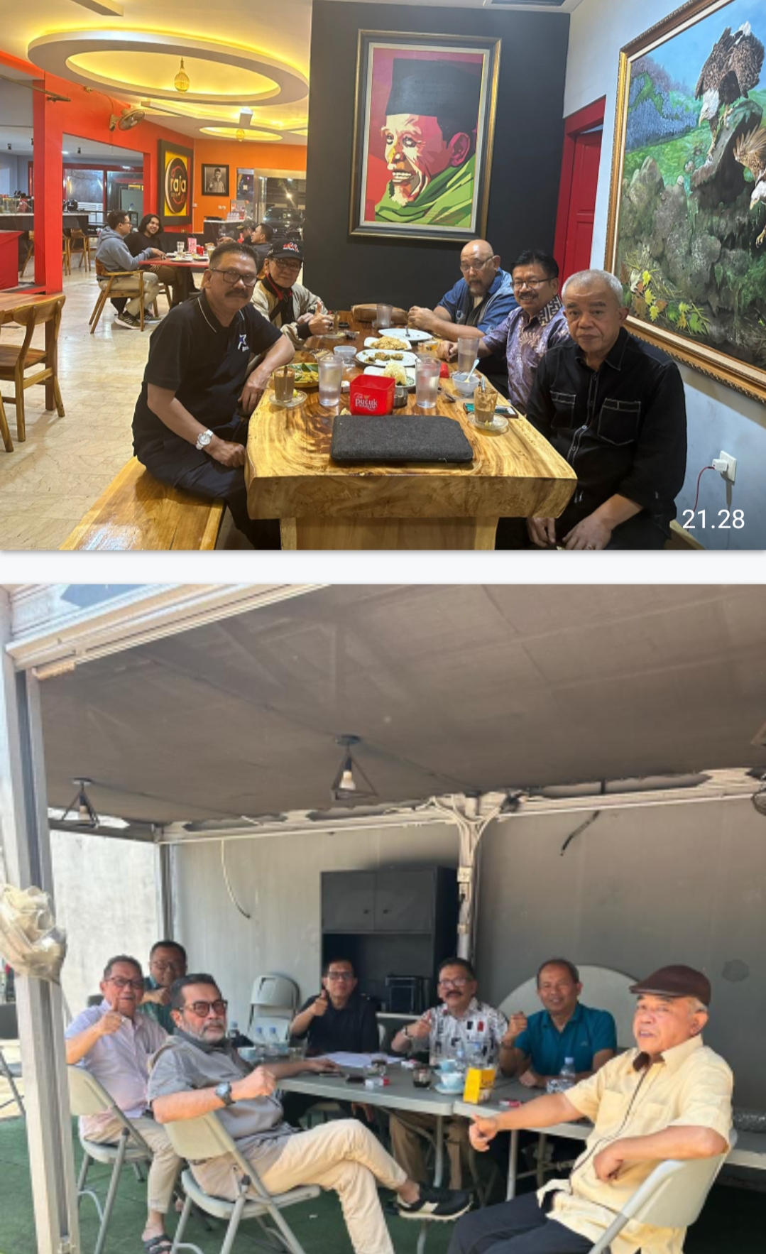 Setiba di Jakarta, Alhamdulillah, cucu tidak jadi dibawa ke RS. Cucu sakit menjadi alasan saya kembali lebih lekas ke Jakarta. Dalam perjalanan dengan dua wartawan senior Danie Soeoed dan Ronny Simon kami sempat mampir di Raja Cafe untuk Salat Maghrib. Cafe itu milik adik Yulian Warman, mantan wartawan senior Harian Bisnis Indonesia yang kini bekerja di Group Astra. Kebetulan Yulian baru masuk Bandung dan mengajak kami mampir di sana.