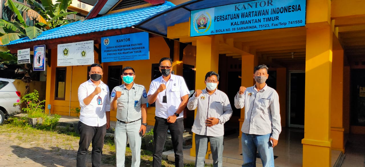 Kedatangan Agung dan tim, disambut Ketua PWI Kaltim Endro S. Efendi, beserta sekretaris PWI Kaltim, Wiwid Marhaendra Wijaya.