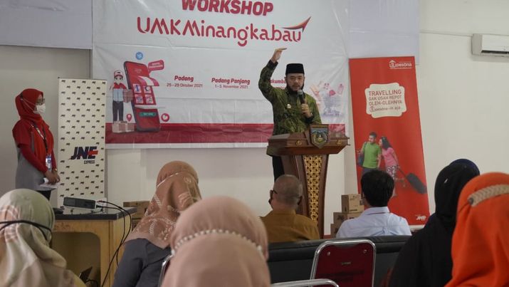 “Jangan sampai nanti produk yang kita pasarkan ini berbeda-beda. Hari rasanya ini, besok rasanya itu. Ini sangat dibutuhkan bagi seseorang dalam membuat sebuah usaha,” saran Wali Kota, H. Fadly Amran, BBA Datuak Paduko Malano kepada peserta Workshop UMKMinangkabau yang diselenggarakan JNE Express bersama SHJD Creative di Aula Senja Kenangan, Senin (1/11).