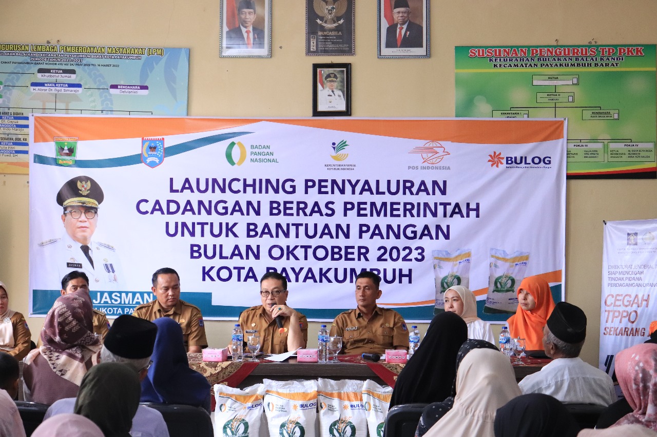 Selanjutnya, Jasman juga menghadiri acara launching penyaluran cadangan beras pemerintah untuk bantuan pangan bulan Oktober 2023 di Kantor Lurah Bulakan Balai Kandi, Payakumbuh Barat.