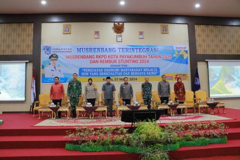 SEMANGATNEWS.COM —Penjabat (Pj) Wali Kota Payakumbuh Jasman mengahadiri Musyawarah Perencanaan Pembangunan (Musrenbang) Rencana Kerja Pembangunan Daerah (RKPD) Kota Payakumbuh Tahun 2025 dan Rembuk Stunting 2024, di Aula Ngalau Lt. 3 Balai Kota Payakumbuh, Senin (7/3/2024).