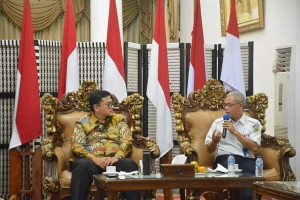 Silaturrahmi antara Komisaris PT KAI dengan Wabup dihadiri Kepala Dinas Perhubungan Alfian Fikri, Kepala Dinas Parpora Abdul Hakim di Gedung Indo Jolito Batusangkar baru-baru ini.