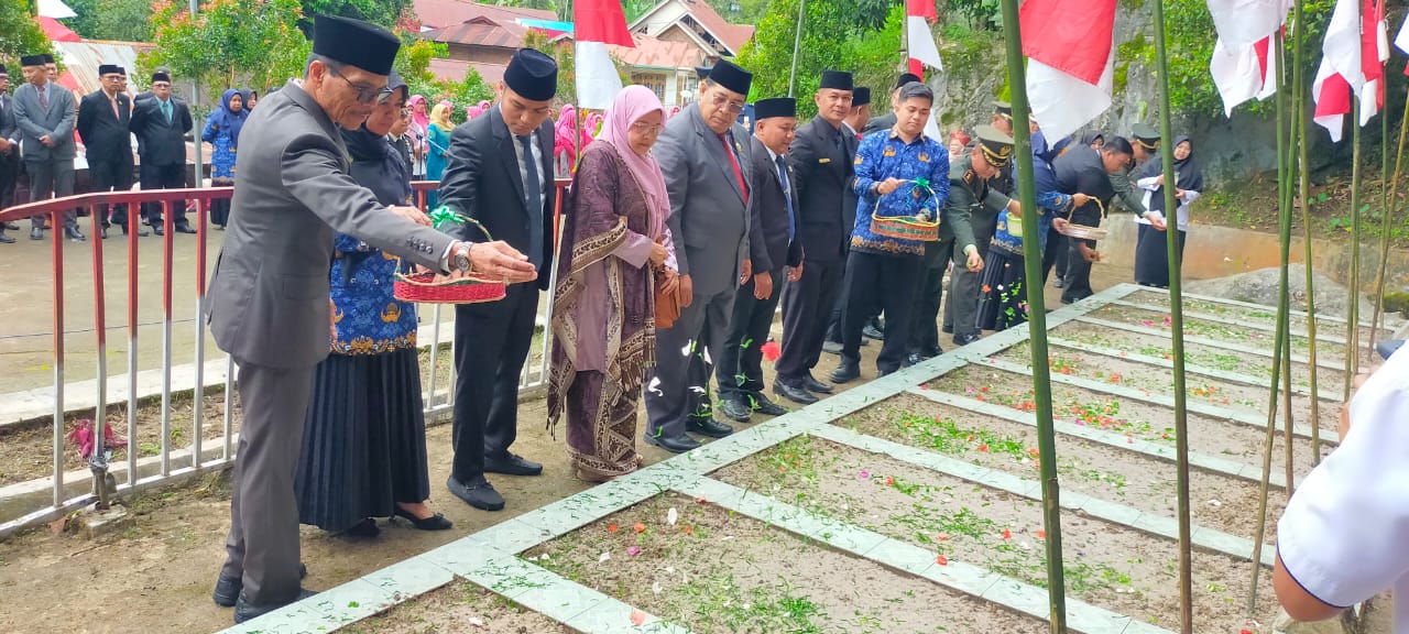 SEMANGATNEWS.COM – Pemerintah Kabupaten Lima Puluh Kota secara bertahap akan merenovasi lokasi makam 9 syuhada peristiwa Titian Dalam Kenagarian Pandam Gadang Kecamatan Gunuang Omeh. Selain itu, juga akan memberikan perhatian terhadap keluarga atau ahli waris para pejuang Pemerintahan Darurat Republik Indonesia (PDRI) tersebut. Hal itu disampaikan Bupati Lima Puluh Kota Safaruddin Dt. Bandaro Rajo dalam sambutannya pada rangkaian acara tabur bunga peringatan gugurnya sembilan Syuhada dalam peristiwa Titian Dalam, Rabu (10/1).