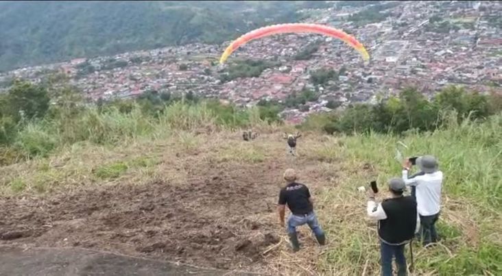 SEMANGATNEWS.COM, PADANG PANJANG – Guna mengembangkan olahraga paralayang di Kota Padang Panjang khususnya Kelurahan Tanah Hitam, Kelompok Sadar Wisata (Pokdarwis) Tanah Hitam lalukan uji terbang di Bukit Tui, Ahad (25/9).
