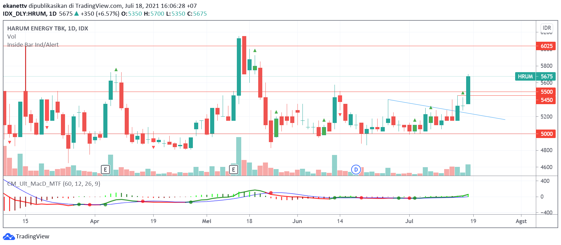 Berikut prediksi saham HRUM dengan analisa teknikal: