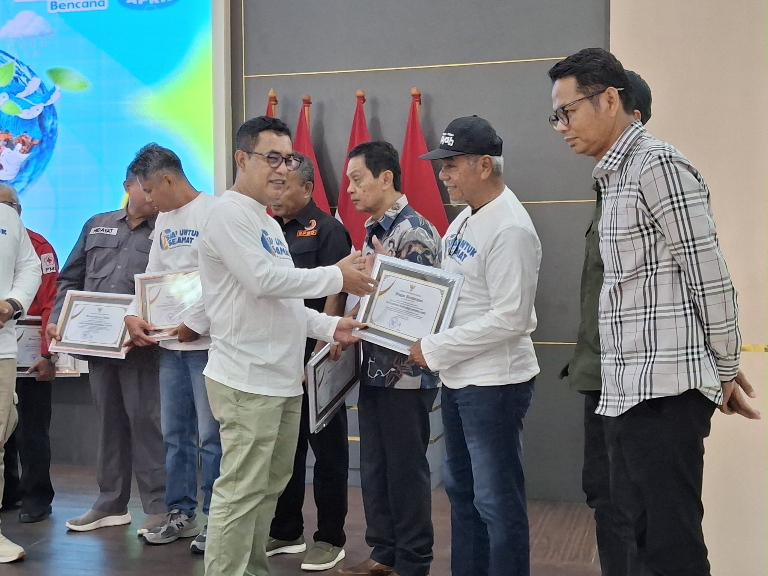 Piagam Penghargaan Kebencanaan untuk SMSI Provinsi Sumbar diterima langsung oleh Ketua Zulnadi, SH. Sedangkan untuk PWI Sumbar diterima oleh Ketua Widia Navies, untuk IJTI Sumbar diterima oleh Ketua Defri Mulyadi Imung, dan untuk PFI diterima oleh Ketua Arief Pribadi.
