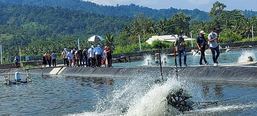 Hadir dalam kesepatan tersebut Kadis Perikanan Kabupaten Tanggamus, pimpinan tambak udamg modren Merry Warti, Pimpinan Produksi Pakan Gold Coin Feed, Ka DLH, Kadis Perikanan, Ka Balitbang, Ka DPM PTSP, Kadis PUPR, Kabiro Pembangunan, Biro Adpim Setdaprov Sumbar,