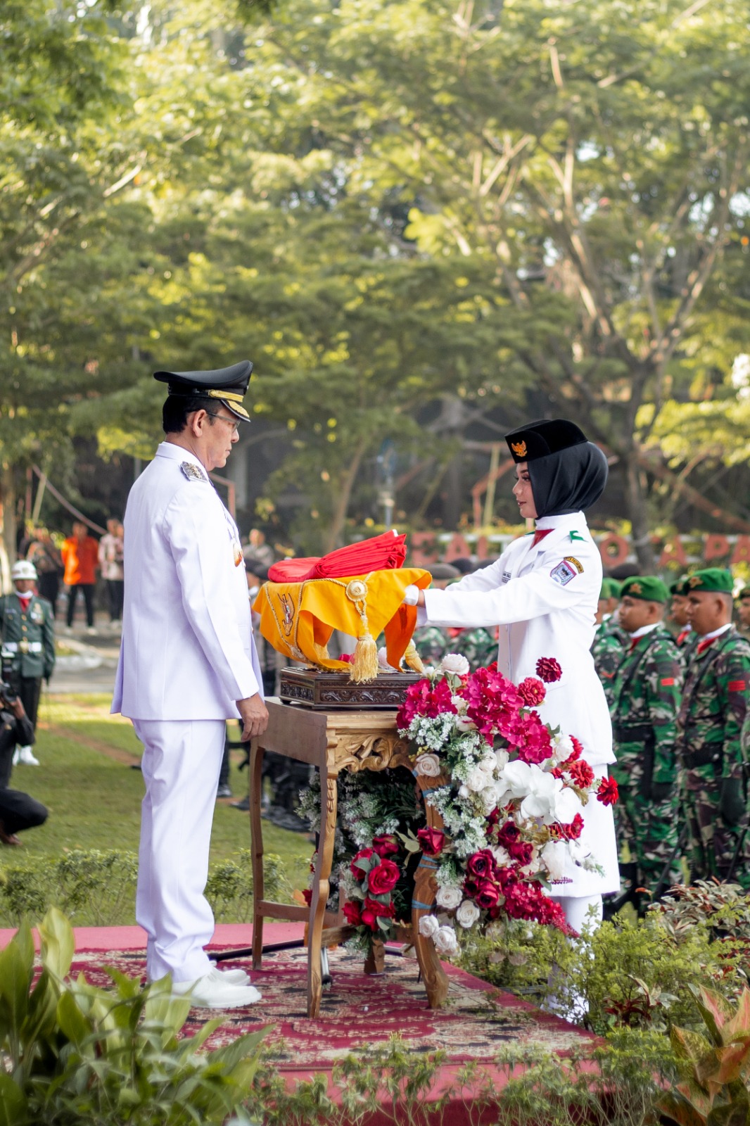 Bertindak sebagai Inspektur Upacara Wali Kota Payakumbuh Zulmaeta dan Komandan Upacara Wadanramil 01 Payakumbuh Lettu Inf. Parlindungan.