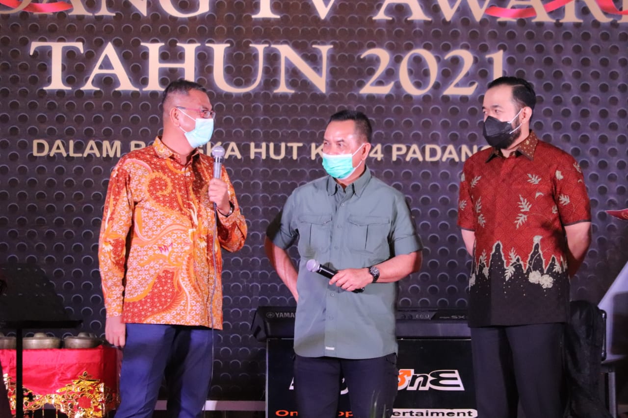 SEMANGATNEWS.COM – Wali Kota Riza Falepi menghadiri perayaan hari ulang tahun (HUT) Padang TV ke 14 tahun sekaligus Malam Anugerah Padang TV Award tahun 2021 yang digelar di Pangeran Beach Hotel, Kota Padang, Jumat (26/3).